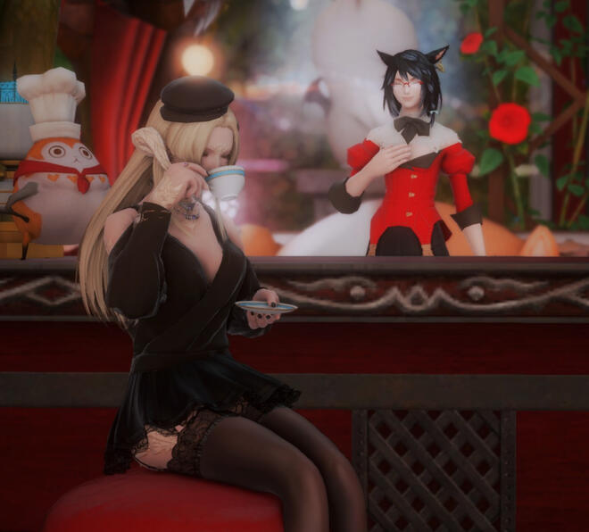 Not-Too-Hot Hot Chocolate - Hot Chocolate that's just the right amount of heat! By default it's quite sweet but it doesn't have to be! We can also throw some tiny cloud mallows in it! (Hot Chocolate)Very Green Tea Matcha - It's quite green and it's quite calming. Not necessarily in a sleepy way (it is tea), but more in a peaceful, meditative focus kind of way! We can sweeten it as the bitter, earthly flavor may be an acquired taste! (Matcha)Clove-Love Tea - Made with cinnamon and clove. Muddled with Dravanian laurel leaves. Warming, pleasant spices perfect for cold weather. (Pixieberry Tea)Cloud Mallow Chamomile Tea - A relaxing floral tea to refresh you after a long day or center you on a busy morning! (Chamomile Tea)Rose Petal Apple Juice - Tart apple juice mixed with just a hint of home-grown rose petal flavor. (Apple Juice)Frozenmint Slush - Muddled mint leaves and beet sugar syrup over crushed ice. (Frozen Spirits)